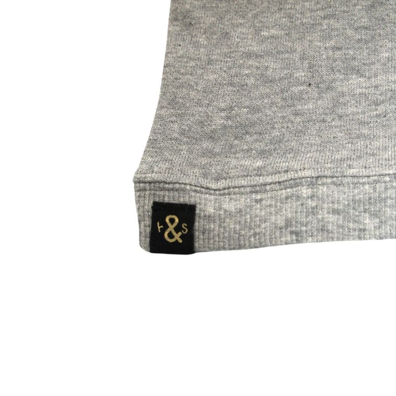 カレッジフォントとエンブレムが効いた、軽い着心地のハーフジップスウェット