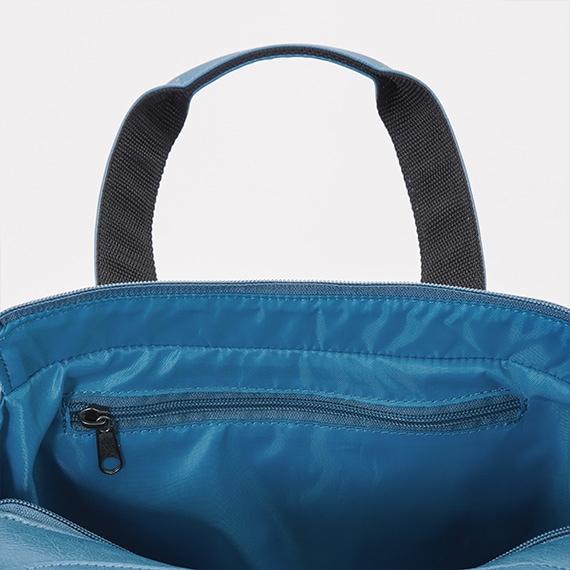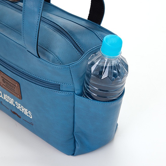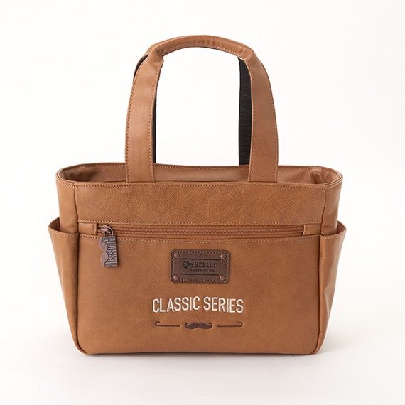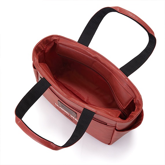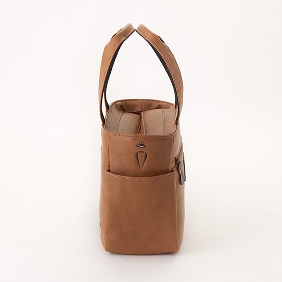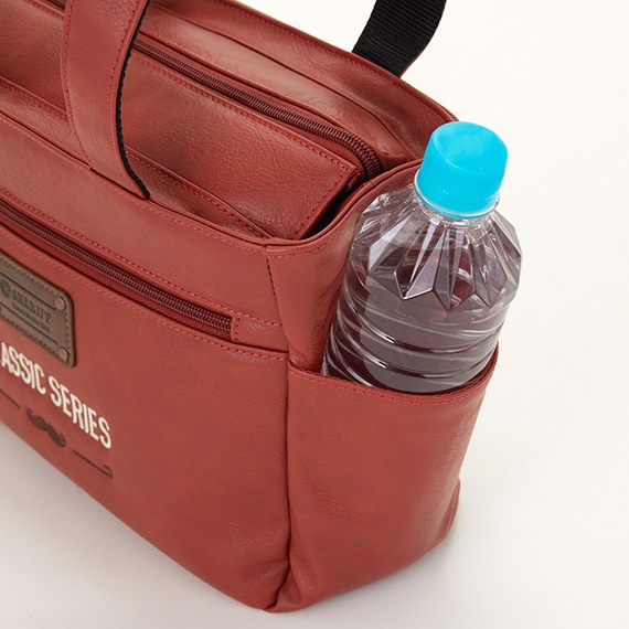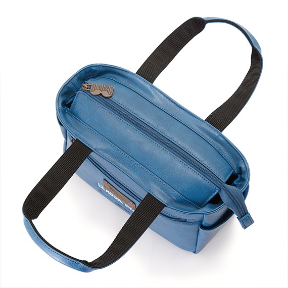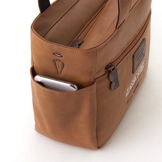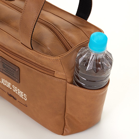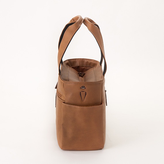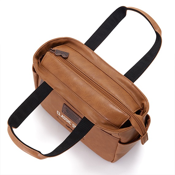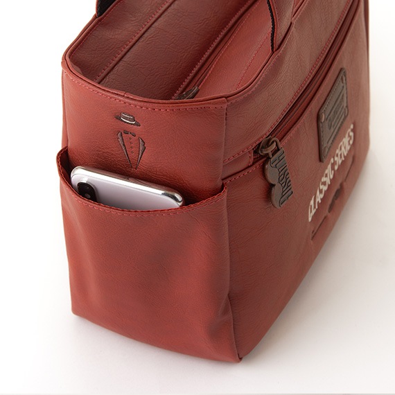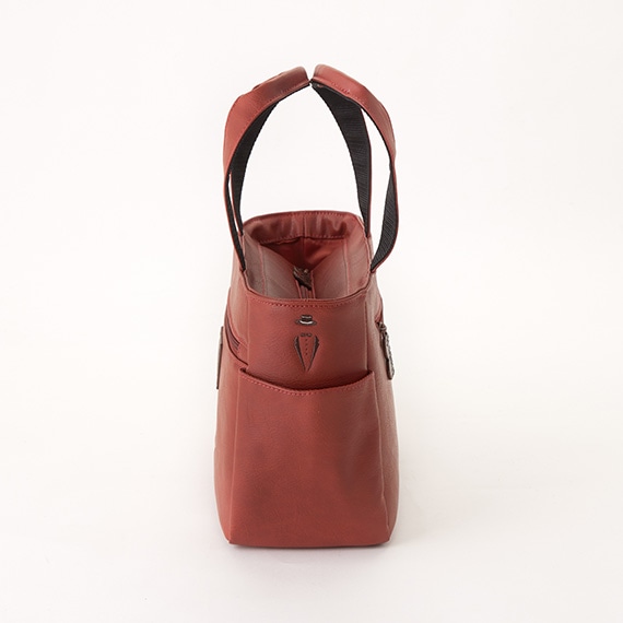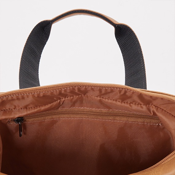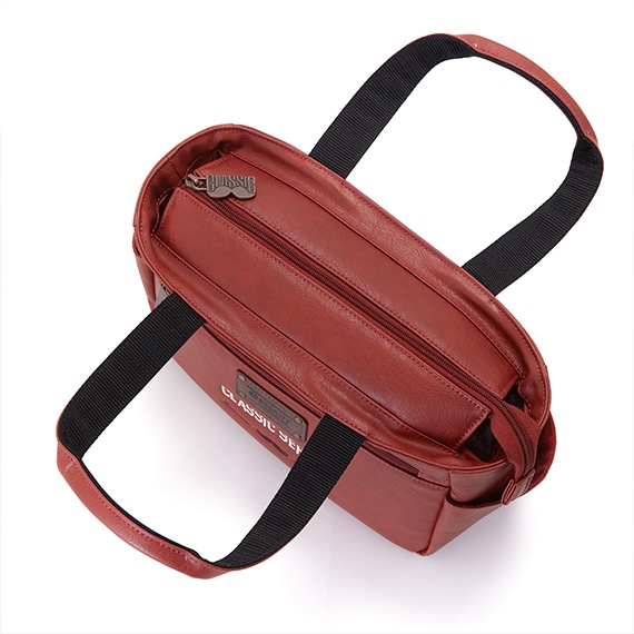 上部にはメインファスナーを装着して中の物も見えにくく、外側と内側にはポケットがあり収納力も抜群です。