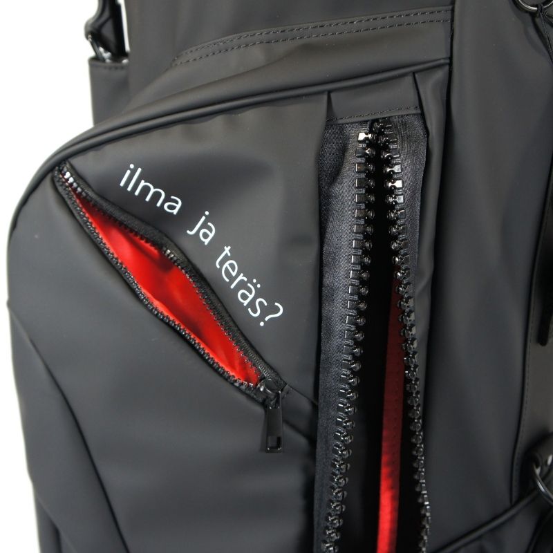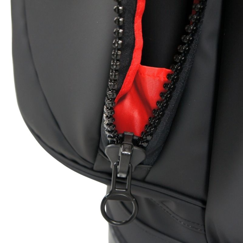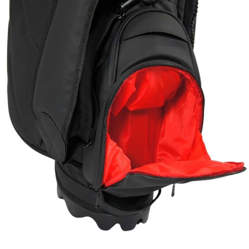 エコロジーをテーマに地球環境に優しいポリウレタン素材とビッグジッパーを使用したキャディバッグ。