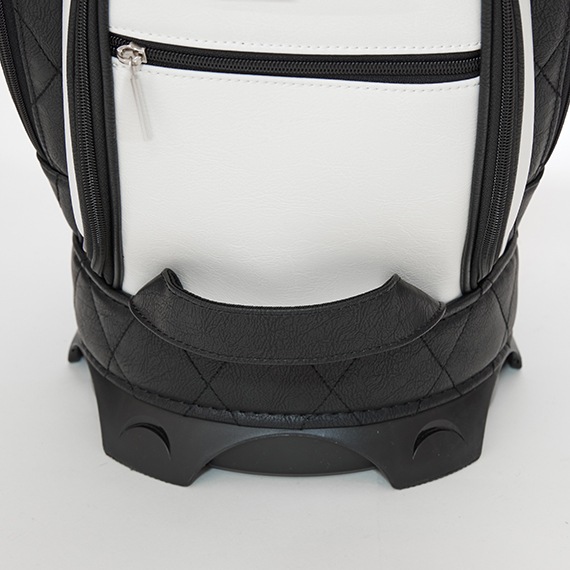 クラブを守る役割のキャディバッグでもありますので、自立性能が高く、倒れにくい、低重心バランス設計にしています。