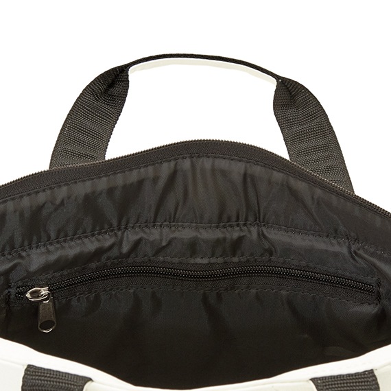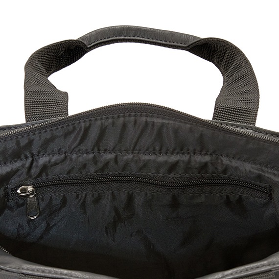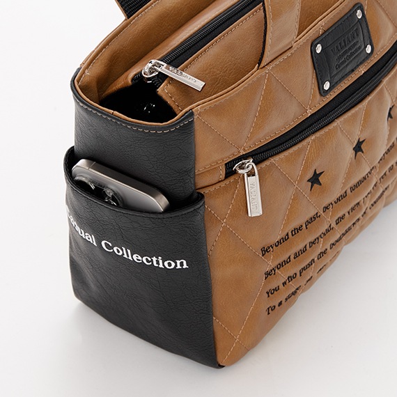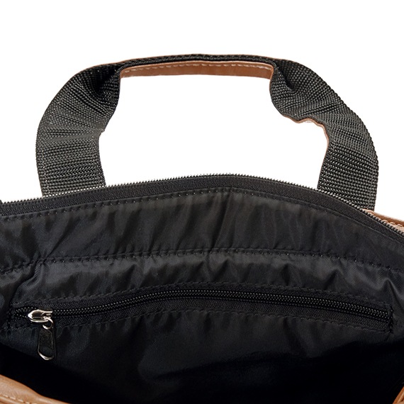 上部にはメインファスナーを装着して中の物も見えにくく、外側と内側にはポケットがあり収納力も抜群で小分けにも便利です。