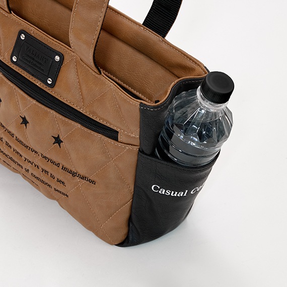 両サイドのポケットには、ペットボトルやスマホ、定期なども入りとても便利です。